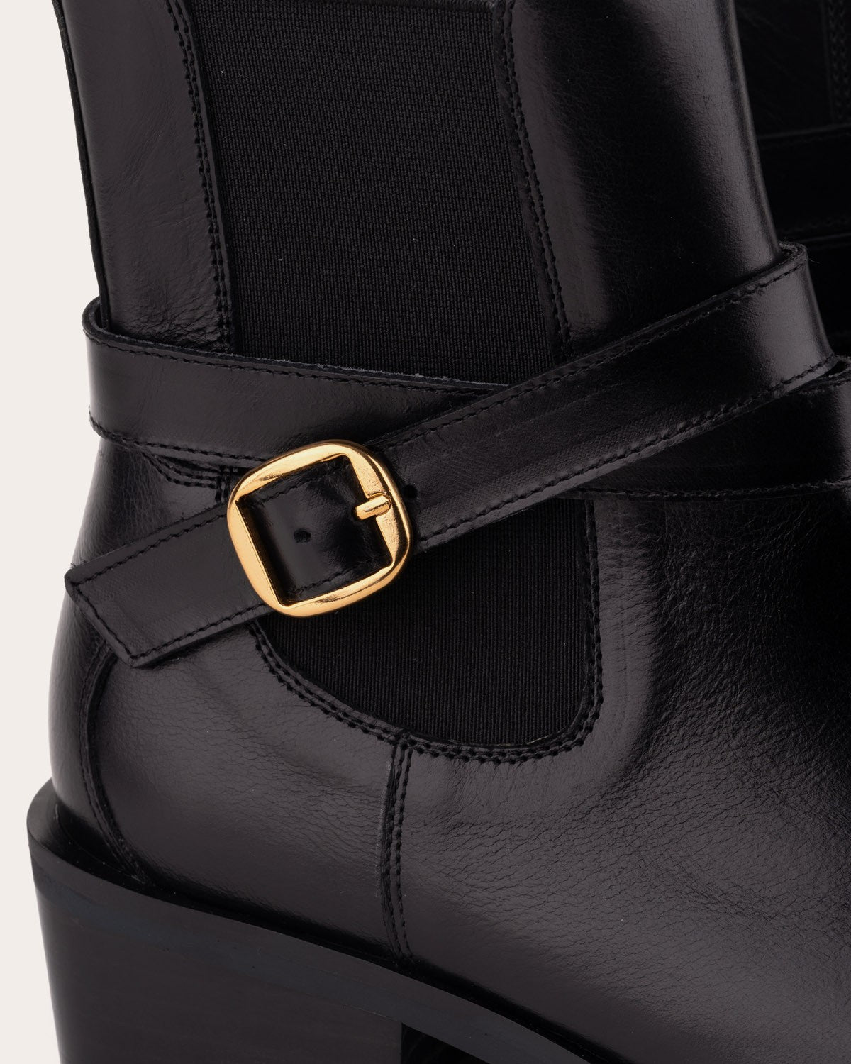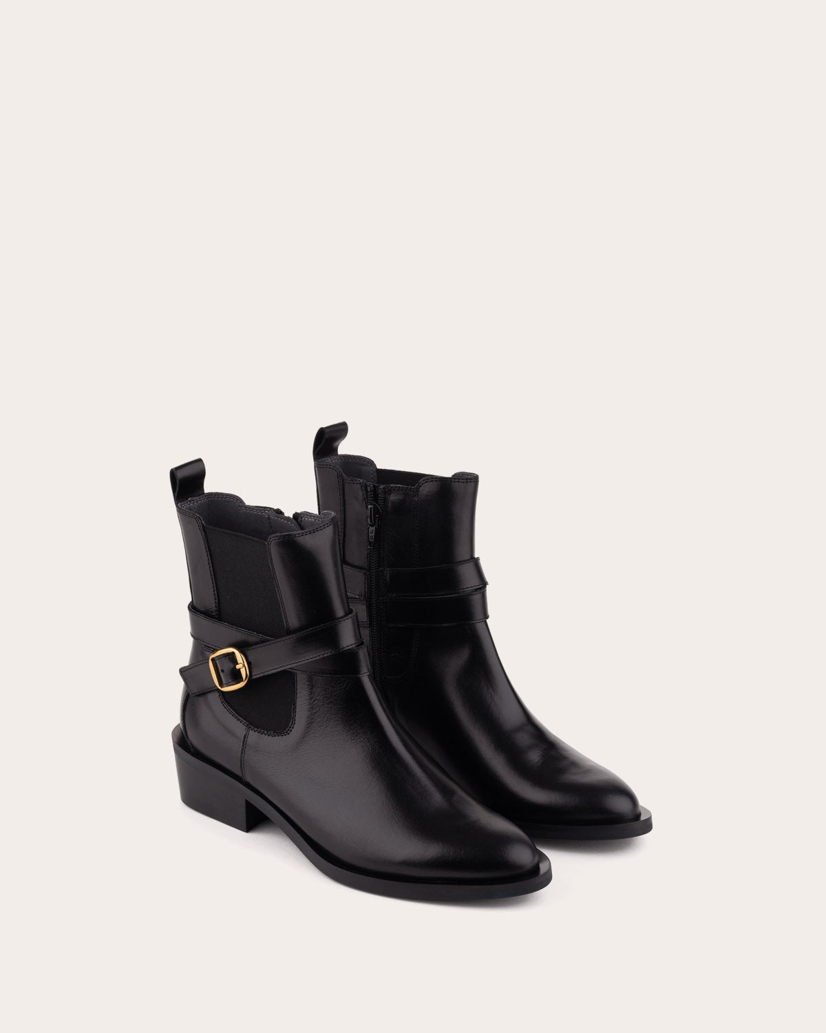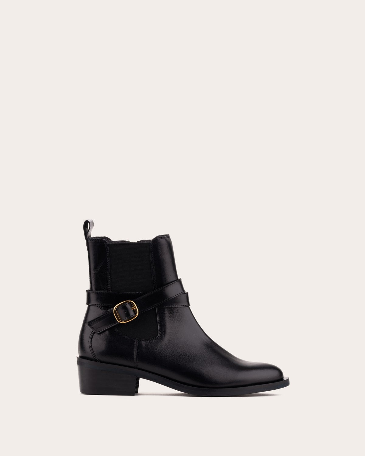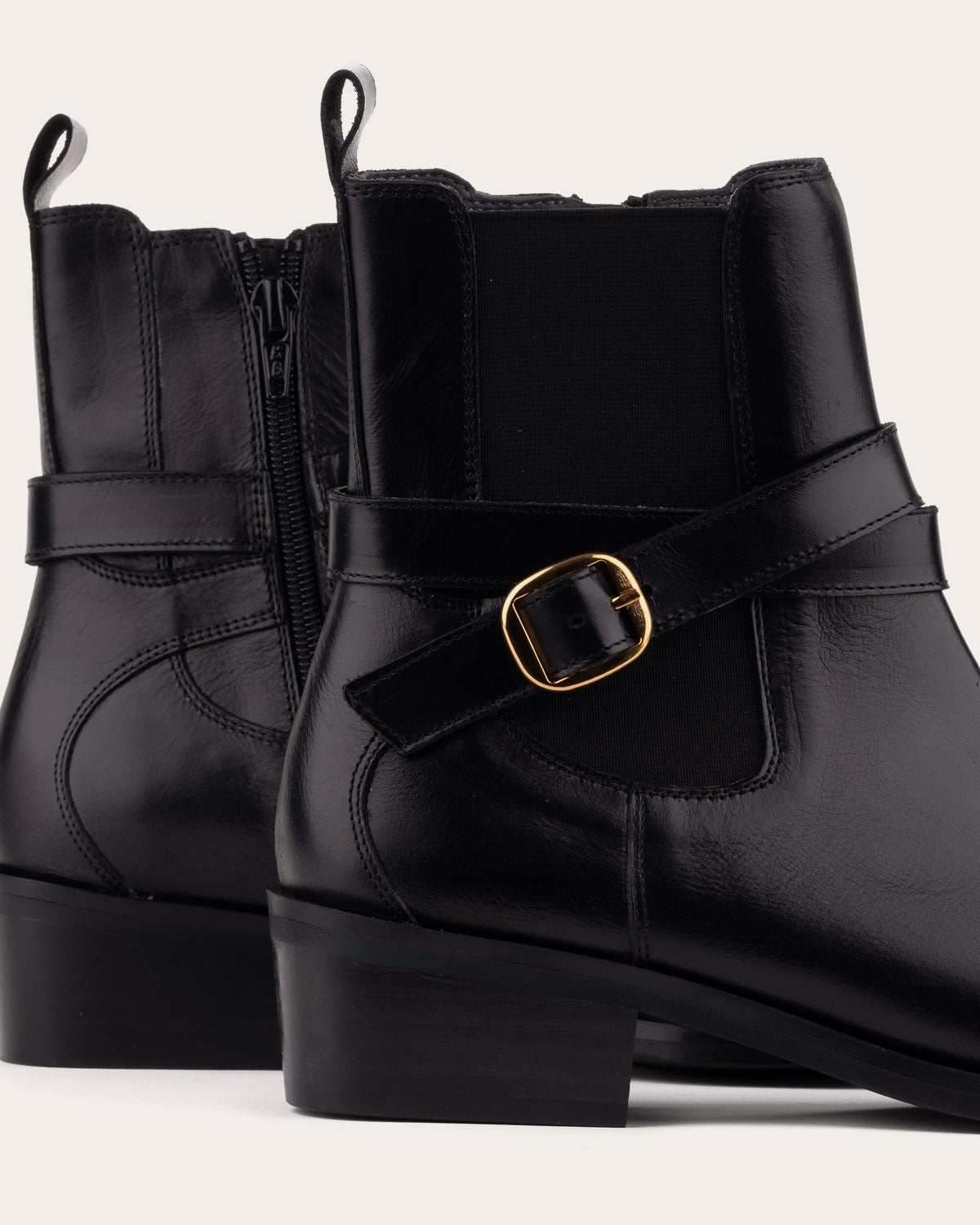 Botín de piel con suela de goma. Diseño con elásticos laterales de ajuste y tira con hebilla decorativa.